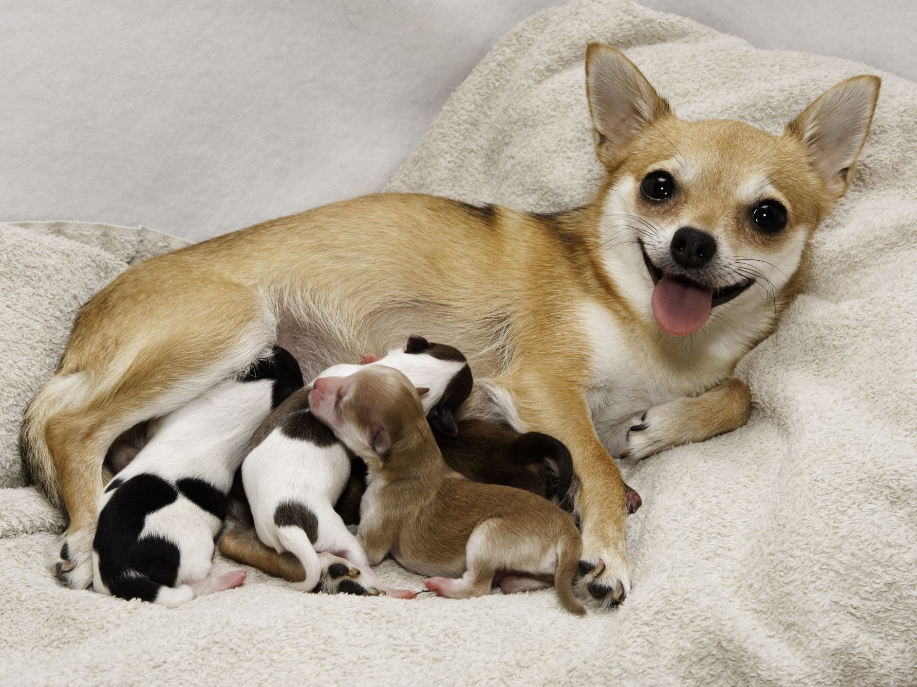 - odvážime (šteniatka majú mať popôrodnú hmotnosť 1 - 3 % z telesnej hmotnosti matky)